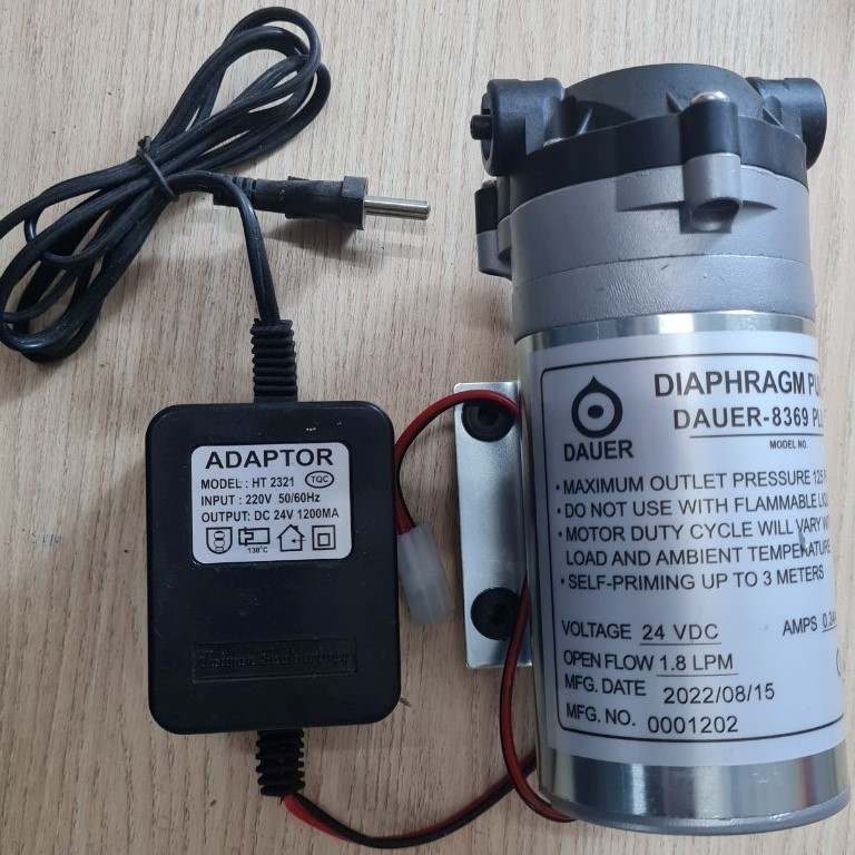 Bơm tăng áp RO DAUER-8369 PLUS 24V kết hợp với Bộ đổi nguồn 24V (nhập khẩu Taiwan) sẽ cho hiệu suất tối đa