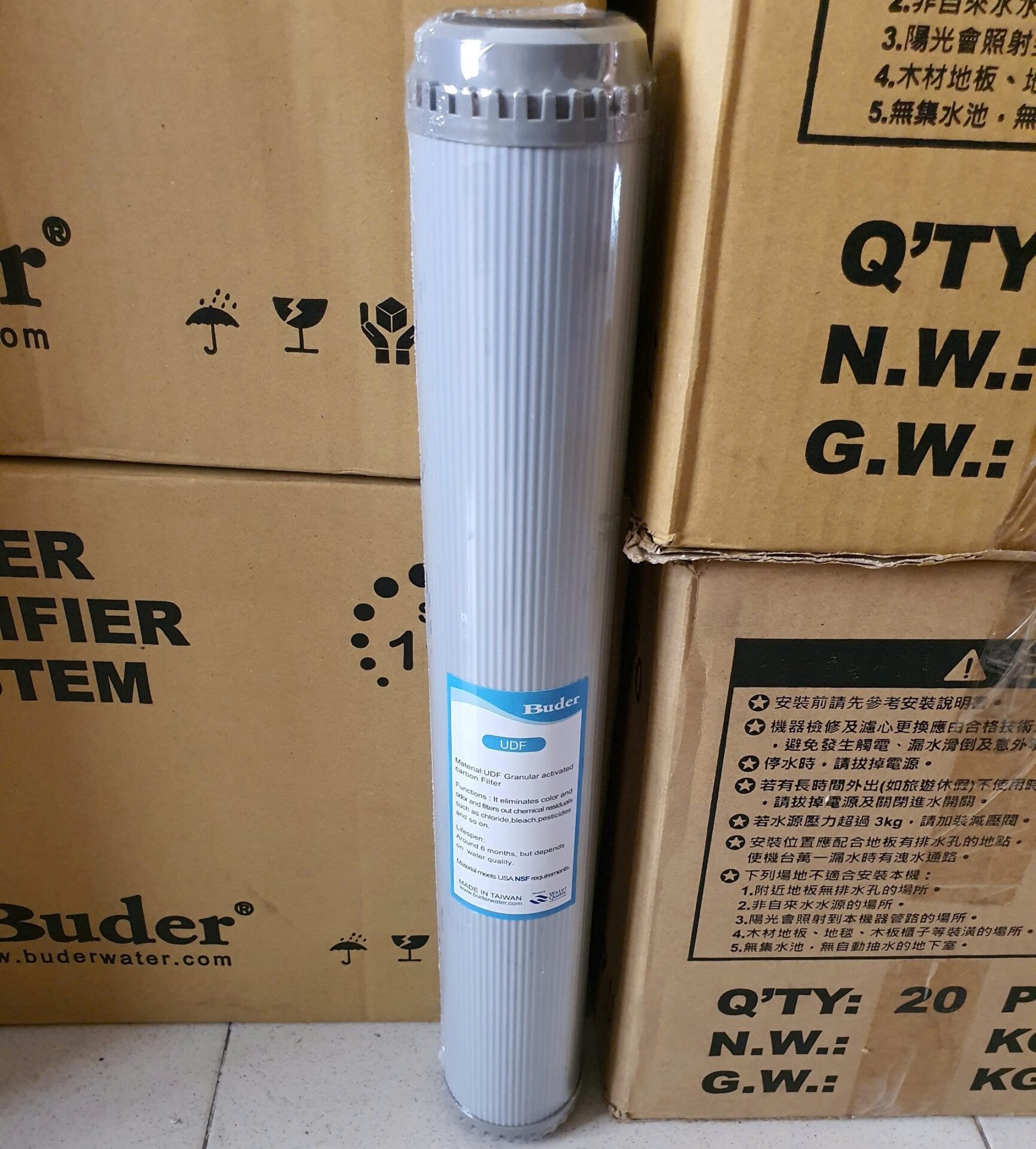 Thông số kỹ thuật cơ bản Lõi lọc than hoạt tính UDF 20inch Buder Taiwan: