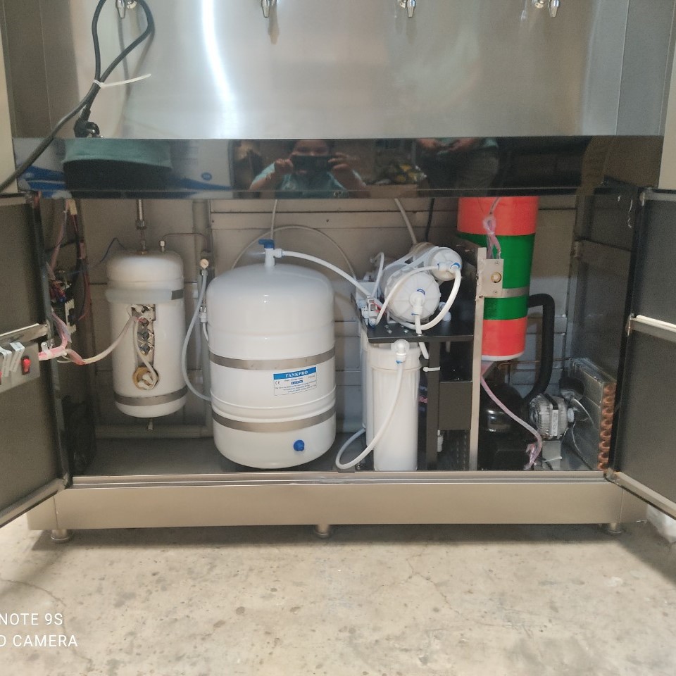 Máy lọc nước RO bán công nghiệp tủ inox đôi lắp đặt cho văn phòng