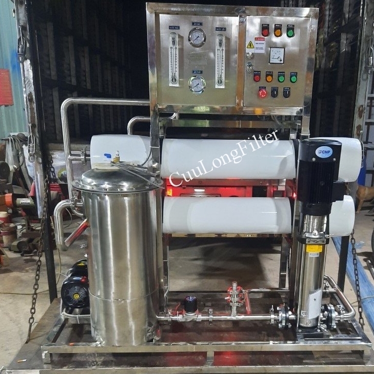 – Lắp đặt trọn gói: khung inox, tủ điện điều khiển, màng RO, bơm, đường ống,…